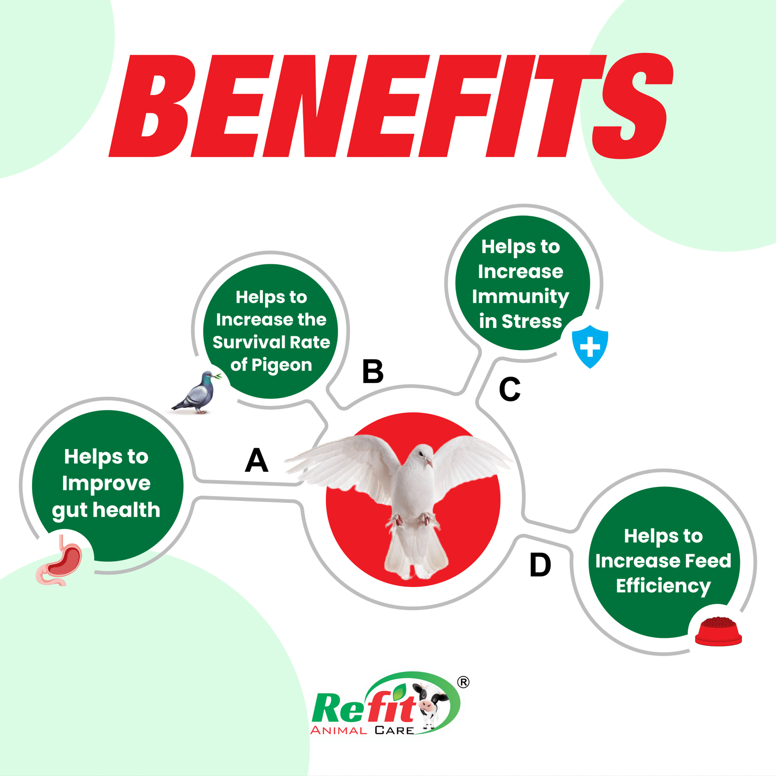 • Helps increase survival rate and improve feed efficiency in pigeons