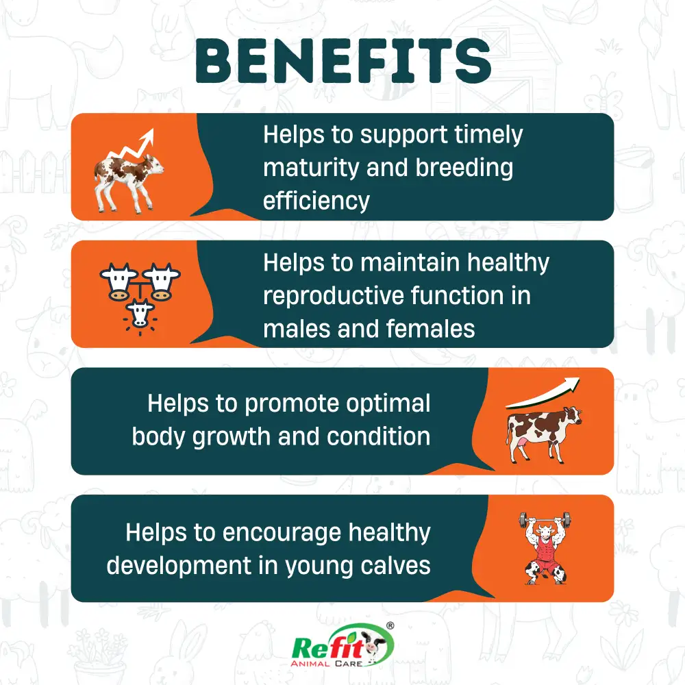 Helps overcome delayed puberty and improves maturity in both male and female calves.