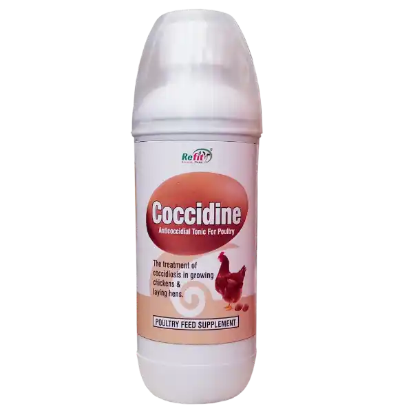 Coccidine by Refit Animal Care is a herbal anti-coccidial tonic, formulated to prevent and treat coccidiosis in poultry birds. It is a natural blend of essential vitamins (A, E), minerals, and powerful herbal extracts that collectively strengthen the birds immune system, support gut health, and combat protozoan infections effectively – without harmful chemicals or antibiotics.