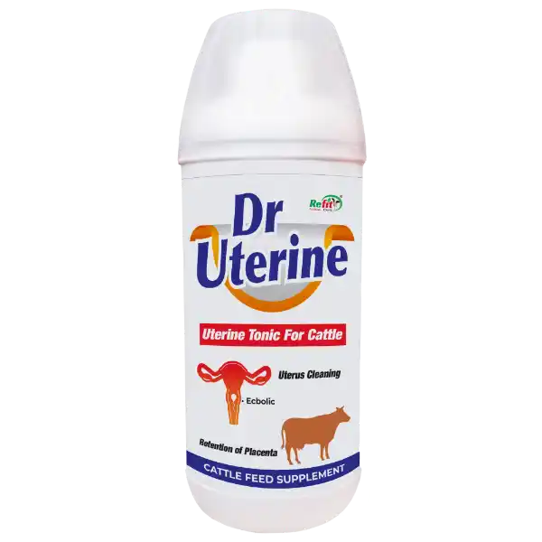 Dr. Uterine Veterinary Tonic is a powerful herbal formula designed to support and maintain the reproductive health of dairy cattle, especially cows. The uterus plays a vital role in reproduction, but it is highly susceptible to infections and inflammatory conditions such as metritis, endometritis, pyometra, and postpartum complications. These may arise due to injury, bacterial contamination, or complications during or after delivery.