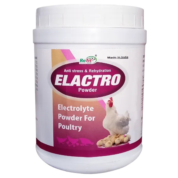 Elactro is a high-quality electrolyte powder developed especially for poultry birds. It helps restore hydration, maintain electrolyte balance, and support energy levels during stress, illness, heat, or transport. Formulated with essential electrolytes, amino acids, and energy boosters like dextrose, Elactro ensures quick recovery and consistent performance in poultry farming.