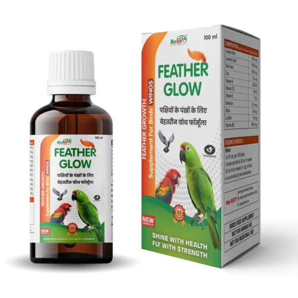 Feathers are more than just beauty they are essential for flight, protection from weather, species recognition, and mating displays. FEATHER GLOW is specially developed to support healthy, shiny, and crisp feather growth for parrots and other birds.