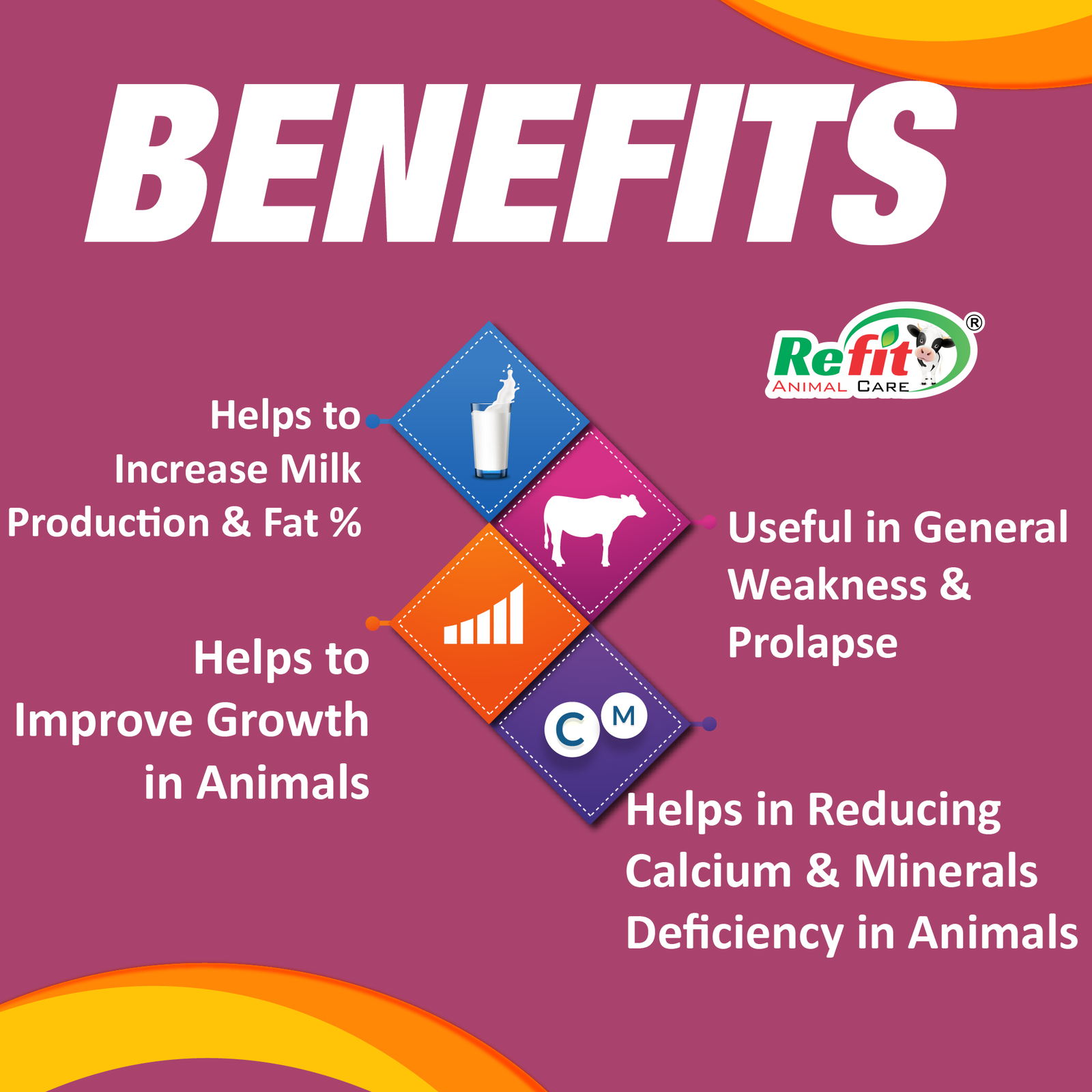 • Increases milk production and maintains optimal fat levels in dairy animals
