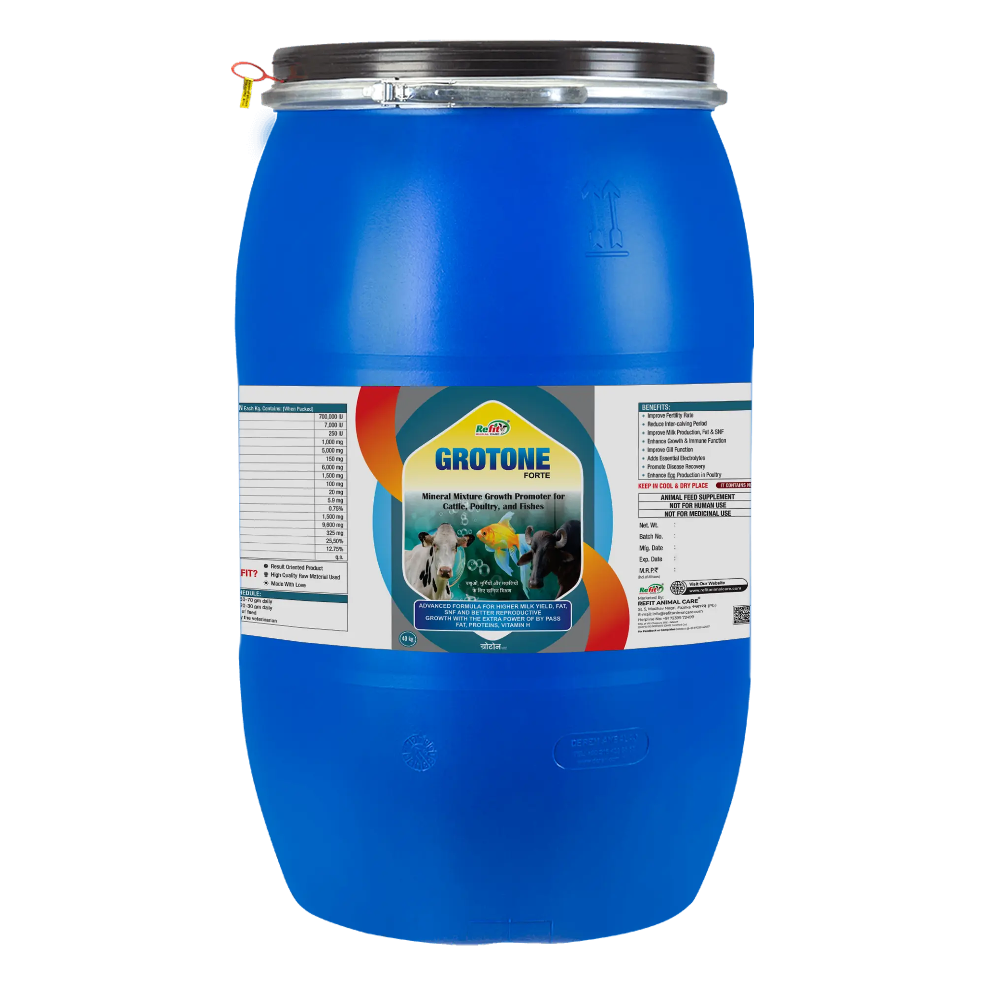Growth Promoter Mineral Mixture For Cattle, Poultry & Aqua | Grotone Forte 40 Kg Drum