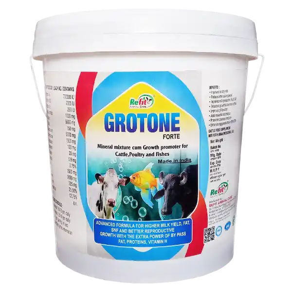 Grotone Forte is a scientifically formulated mineral mixture designed to fulfill the essential nutritional requirements of livestock. Enriched with vital macro and micro minerals, amino acids, and vitamins, Grotone Forte supports the overall health, growth, and productivity of animals.