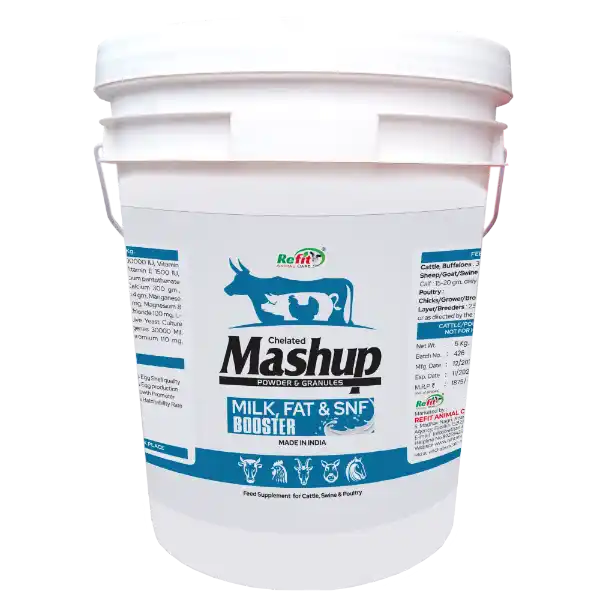 • Boosts milk production along with fat and SNF levels in dairy cattle