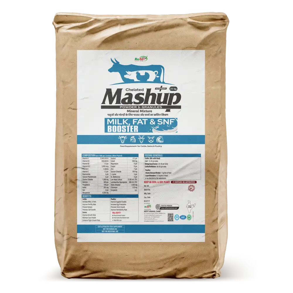 Mashup is a high-quality mineral mixture supplement available in both powder and granules form. It is designed to provide essential macro and micro minerals that support healthy bone development, muscle strength, milk production, and overall well-being in livestock.