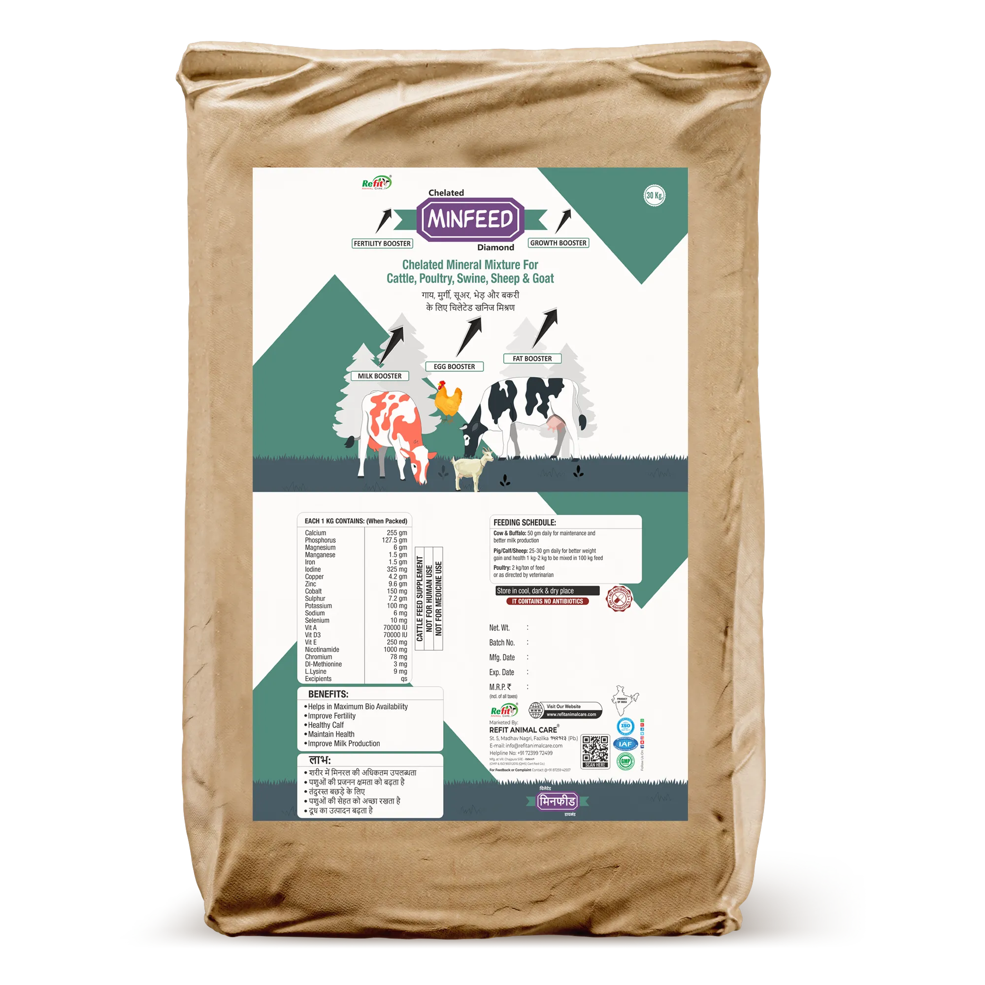 Chelated Mineral Mixture For Cattle & Poultry | Minfeed Diamond 30 Kg Bag
