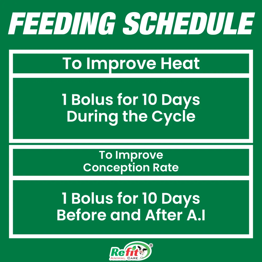 Refertile by Refit Animal Care is a scientifically developed heat inducer bolus formulated to support and stimulate the reproductive cycle in female livestock. This natural solution is ideal for animals experiencing delayed or silent heat and helps improve conception success during breeding cycles.