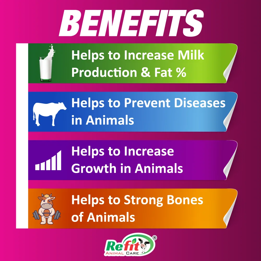 • Boosts milk yield, fat percentage, and SNF levels in dairy animals