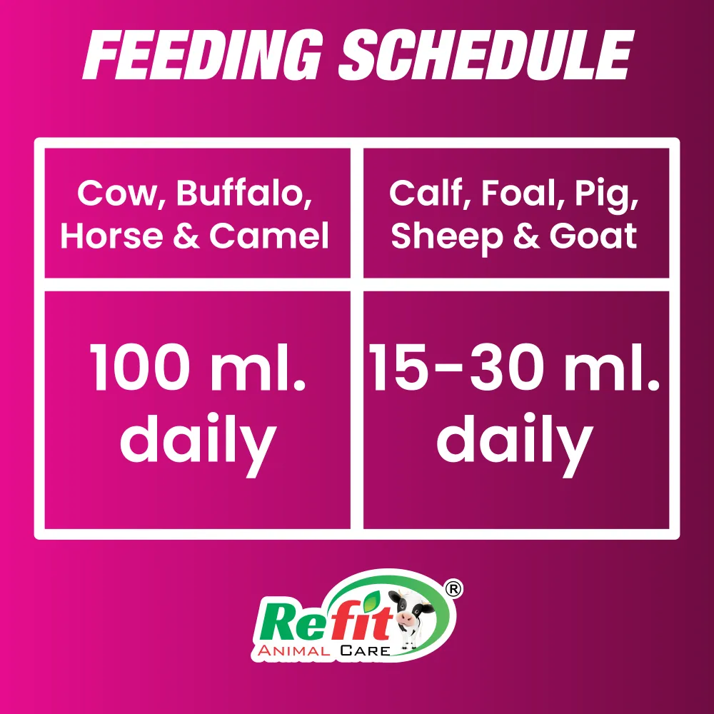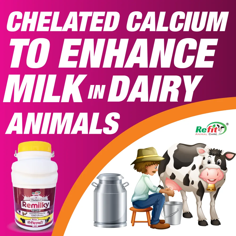 Remilky Forte is a powerful liquid calcium supplement specially formulated for dairy animals like cows, buffaloes, and goats. It provides highly absorbable calcium, Vitamin D3, and essential trace minerals to support bone strength, muscle function, and peak milk production.